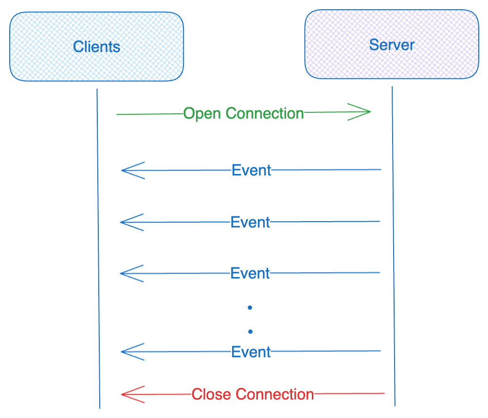 服务器通过 HTTP 长连接持续向客户端发送 “事件”,每个事件需遵循严格的文本格式,以\n\n作为结束符: