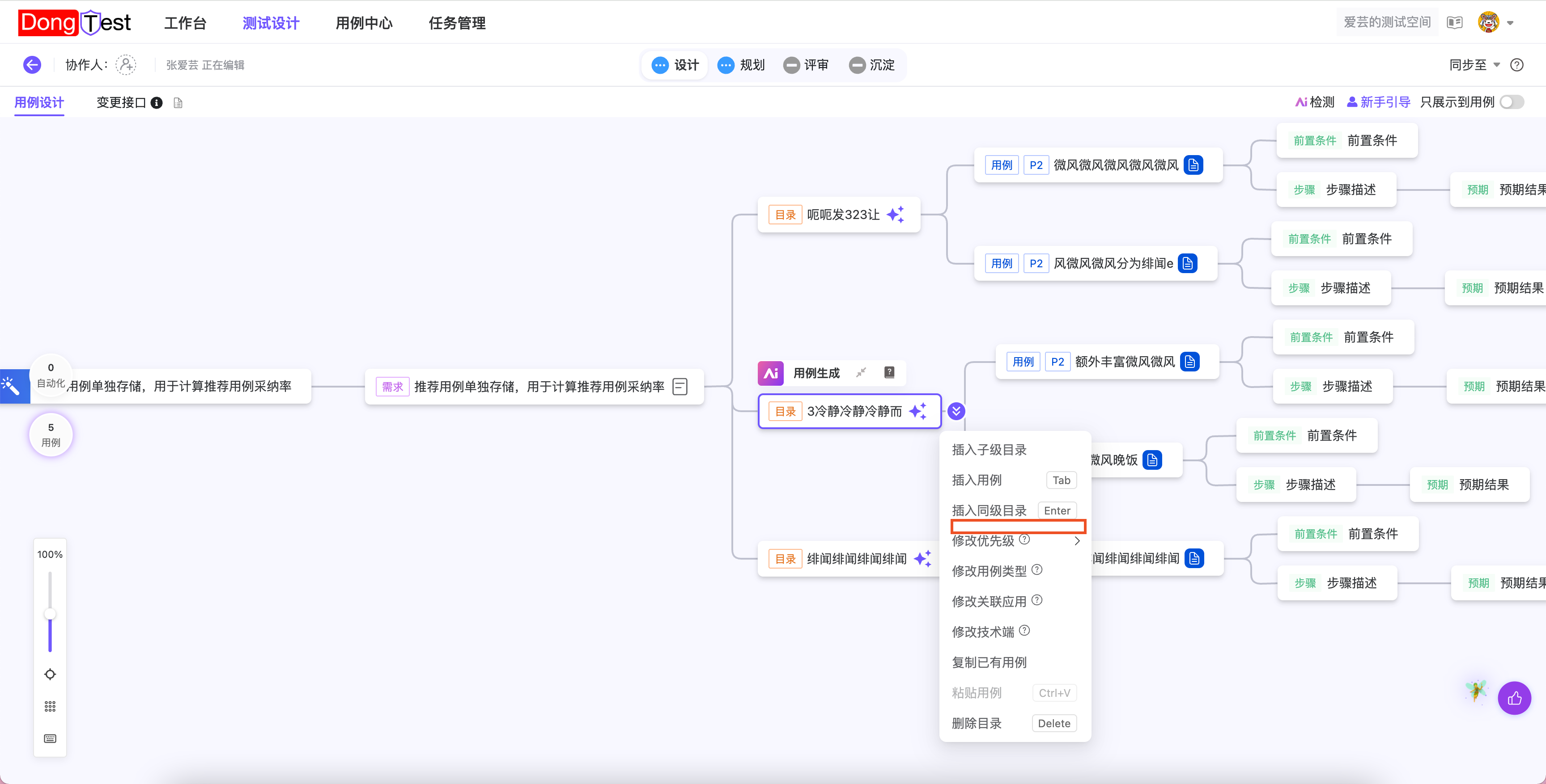| 编写用例 | 编写用例时支持批量打标签 | ·目录、用例批量操作增加添加标签操作; ·点击添加标签,弹框展示标签输入的弹框,点击确定后,追加至所选用例的标签字段 ![]() ·联调设计同步支持 | ![]() |