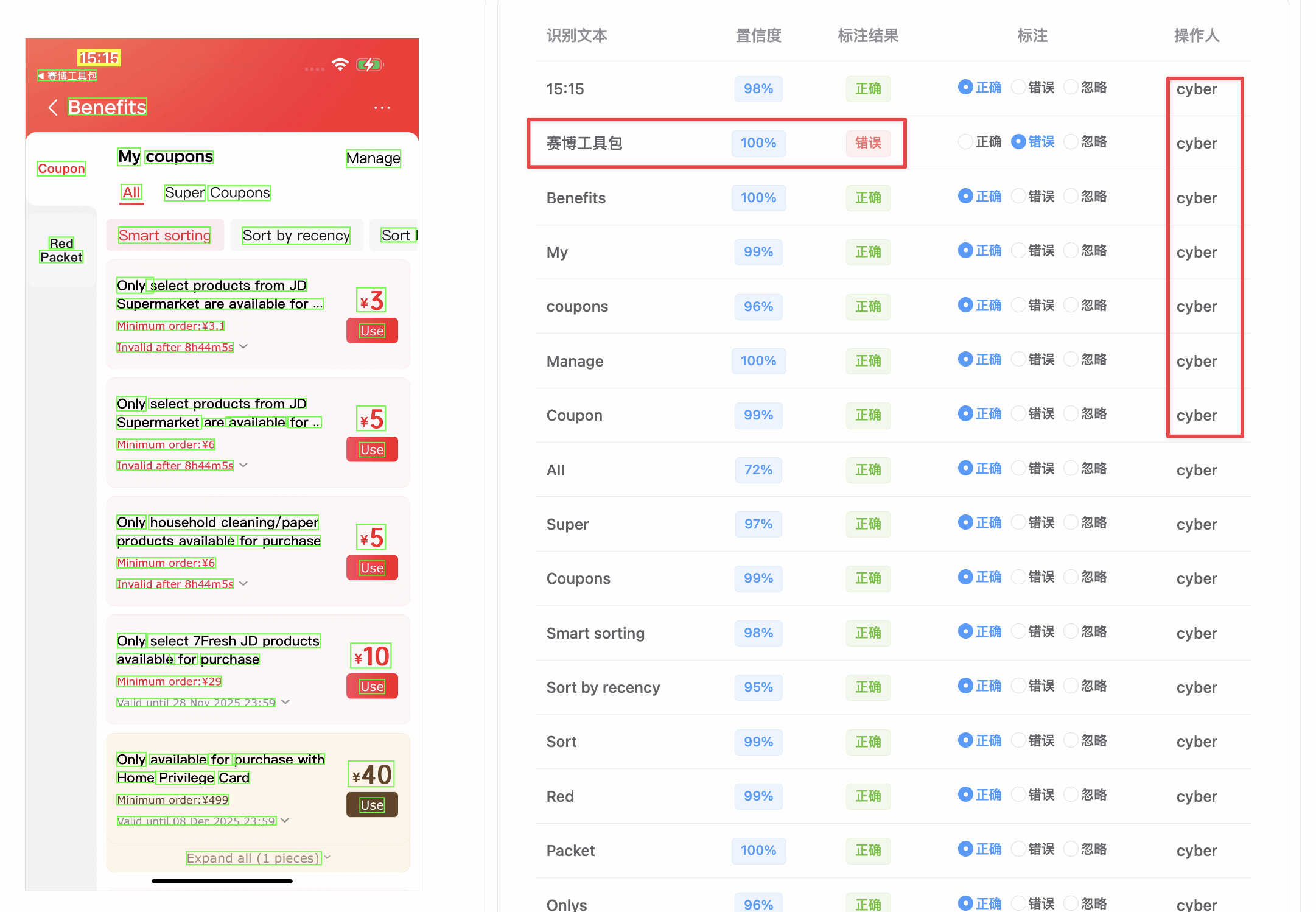 基于赛博平台对各页面的识别结果,将接口中翻译后的内容提取出来并输送给智能体,由智能体来检测多语言翻译的准确性。