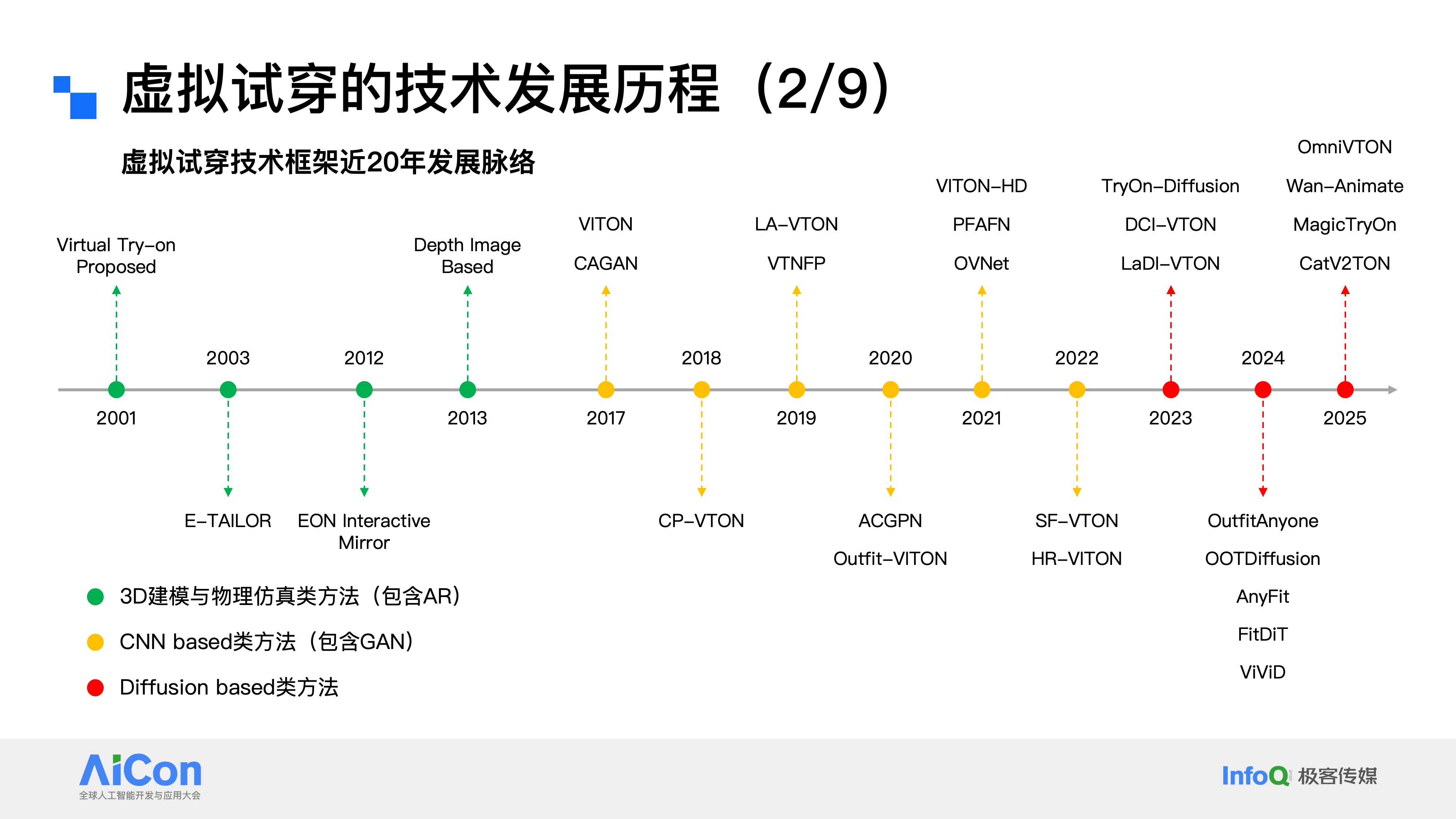 2001年至2025年的二十余年间,虚拟试穿技术在学术界的框架演进可分为三个核心阶段: