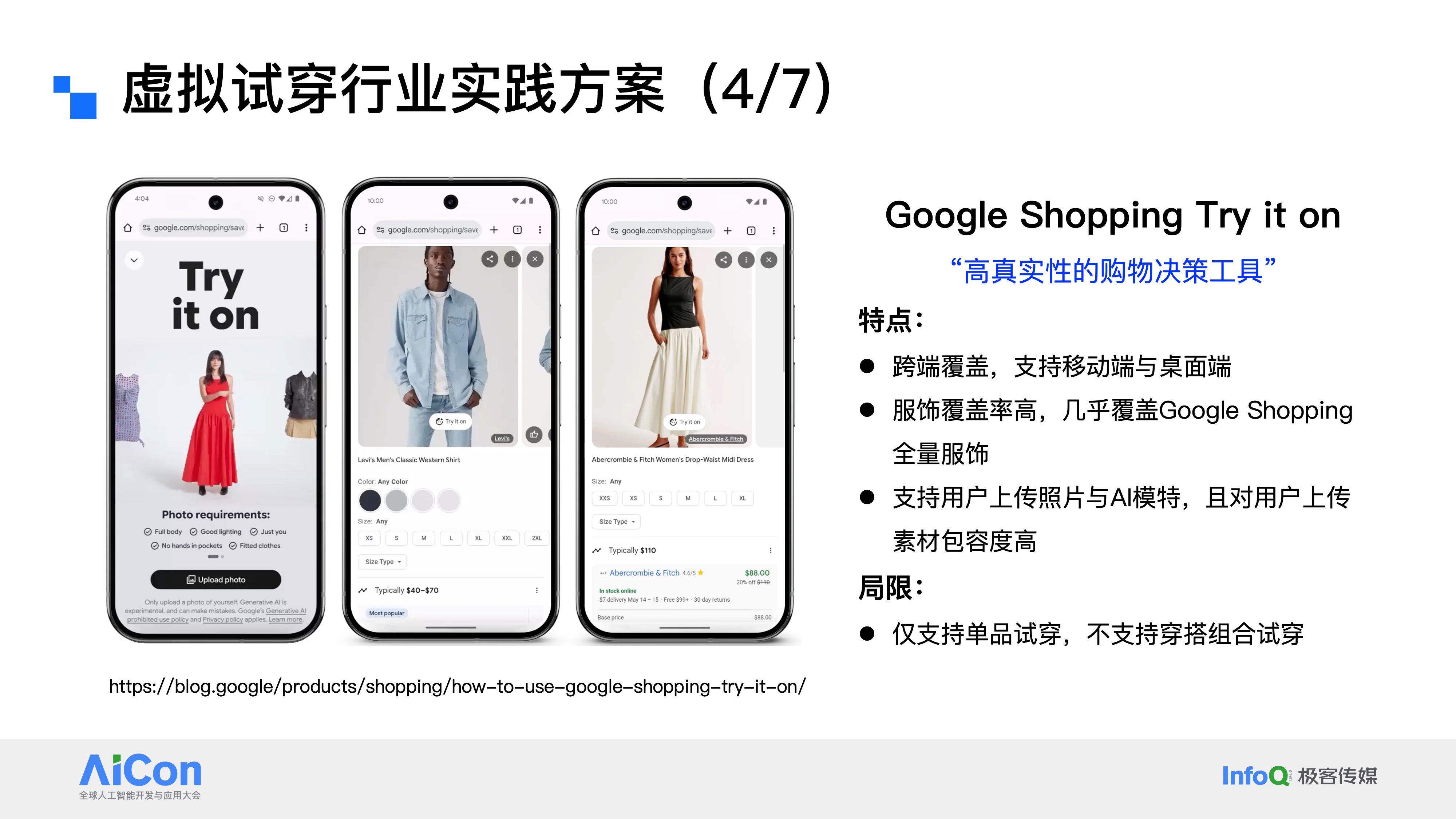 而在虚拟试穿的行业实践方案,目前国内外电商大厂已推出多款虚拟试穿产品,覆盖C端购物场景与B端商家服务场景,各产品特点与局限性各有不同: