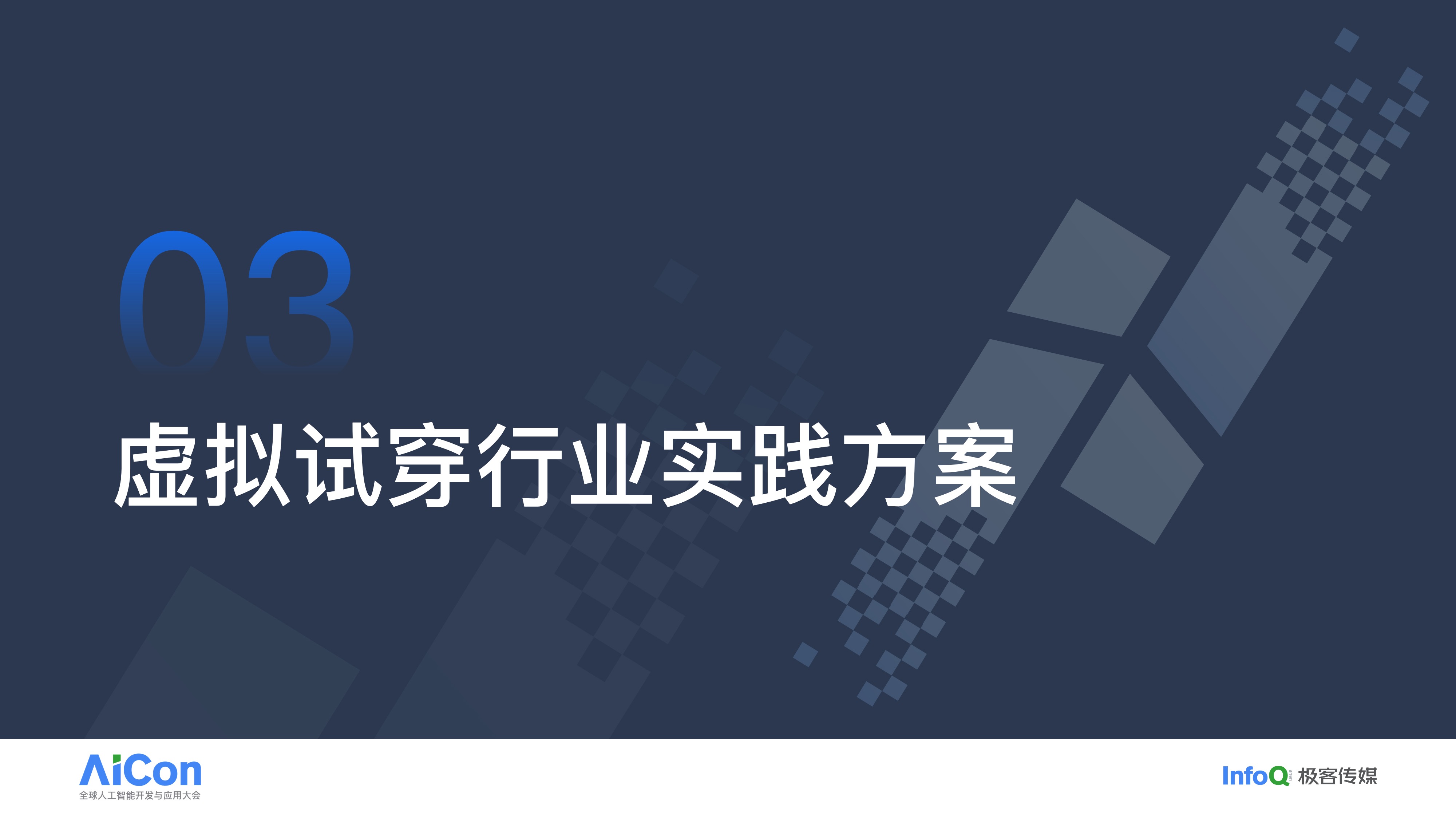 虚拟试穿的底层逻辑可概括为A+B=AB,其中A指模特的图片或视频,B则是服饰图。通过视觉生成技术将服饰“穿”到模特身上,最终以静态或动态效果呈现给用户,核心要求是保证模特与服饰的关键信息不被破坏、不被篡改。