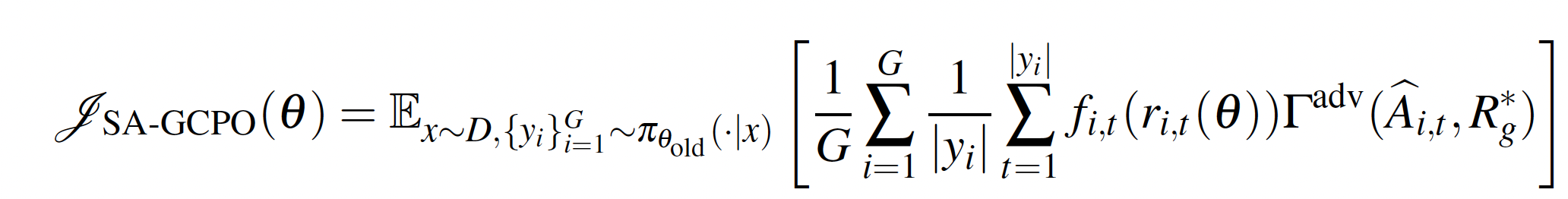 - 统一奖励映射与策略优化:设计了一个统一的奖励映射服务,将不同场景、不同业务目标(如GMV,转化率,合法性,多样性)的奖励信号归一化。在此基础上,提出了Soft Adaptive Group Clip Policy Optimization (SA-GCPO) 算法进行强化学习训练: