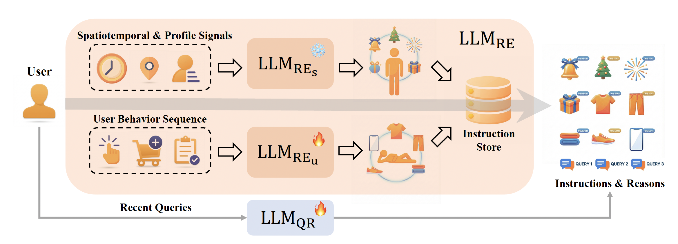 - 近线指令服务:推理指令通过近线服务批量生成并存入KV数据库,线上推荐模型直接读取,实现了零在线LLM调用,兼顾了语义丰富性和低延迟。