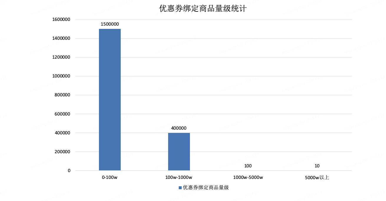 优惠券个体之间选品数差异较大,以下为双十一期间优惠券绑定选品数量分布情况,优惠券总量级在200w左右,双十一时满200-20优惠券选品数可达达到6.6亿,选品总量级在百亿以上,数据倾斜问题严重