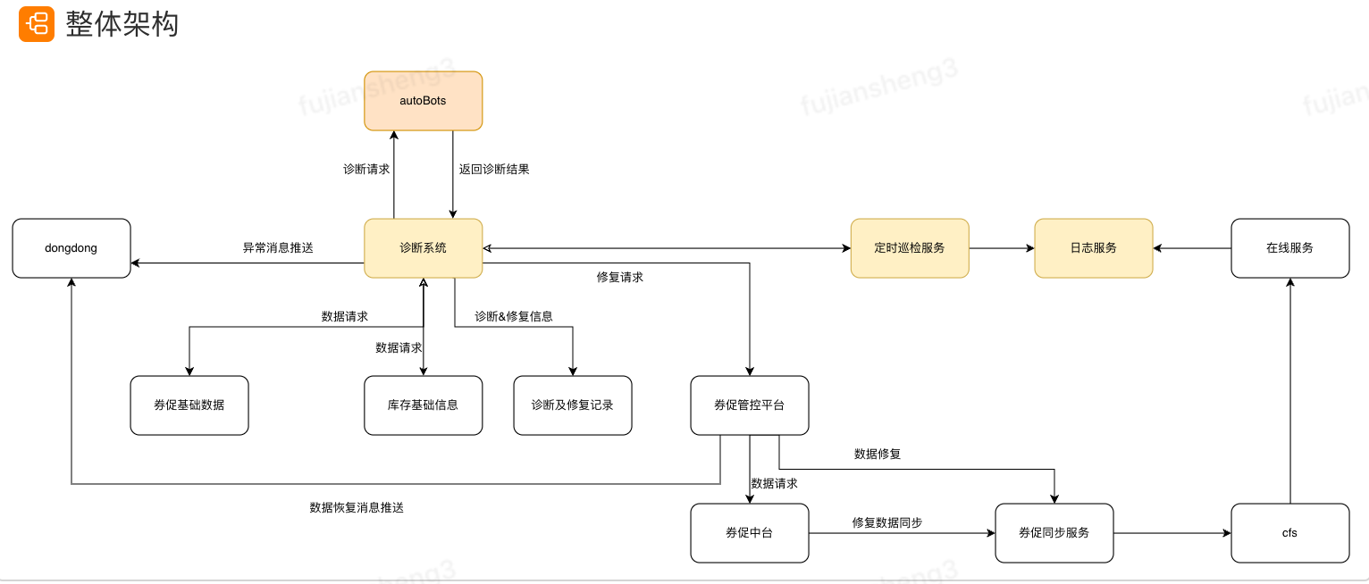 - 自动化修复:如果诊断发现结果是可自动修复,那么及时将修复请求发送到指定服务(如券促同步服务),及时进行数据修复