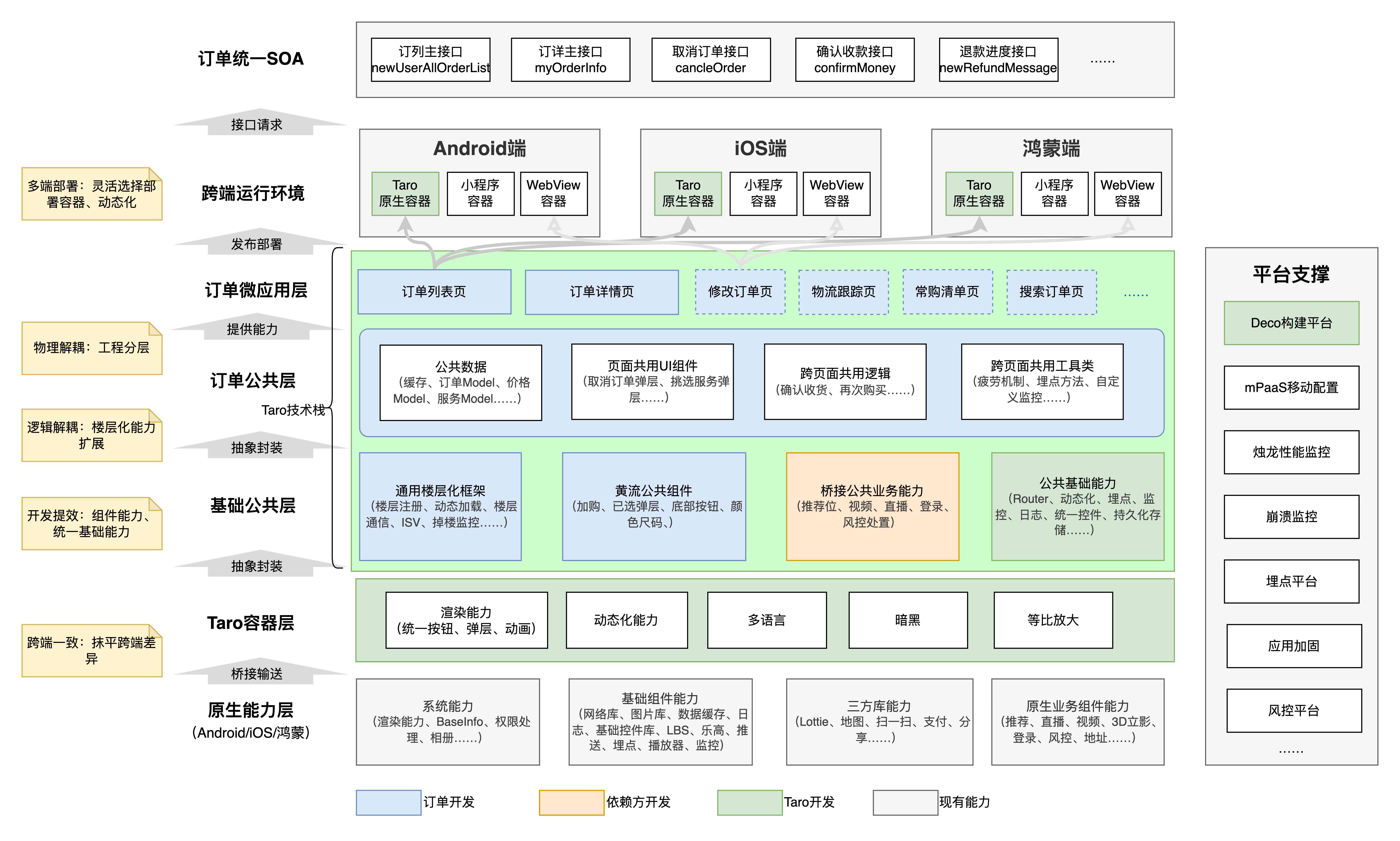 整体架构:统一SOA+Taro跨端技术实现Android、iOS、Harmony三端能力对齐