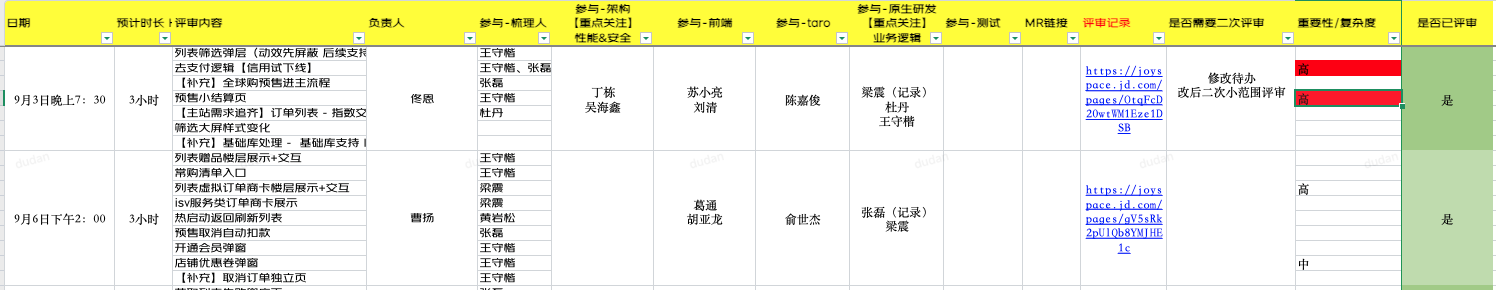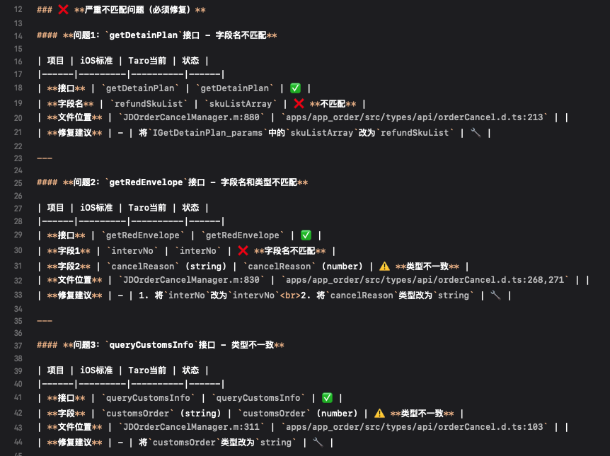 订单项目共组织开展了30余场业务CodeReview评审会议,全面采用多角色协同参与的代码评审机制,以确保代码质量与业务逻辑的准确性。评审团队由多个关键角色组成,包括业务梳理人、开发人员、前端架构师、Taro研发工程师以及测试人员等,通过多方协作,从不同视角对代码进行深入分析与评估,提升整体开发效率与系统稳定性。此外,业务研发还对每项开发任务进行了重要性与复杂程度的标注,便于在评审前快速识别出需要重点关注的模块或功能,从而合理安排评审资源与时间。在评审过程中,所有提出的意见与建议均被详细记录,并形成标准化的评审文档,便于后续跟踪与优化,确保问题能够及时闭环处理,持续推动项目高质量交付。
