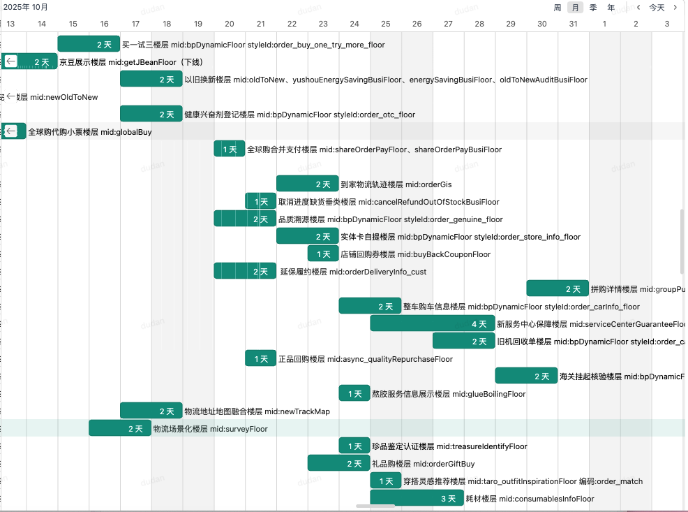 我们将订单16个页面、功能细节分解为390多个具体任务,确保每一个业务场景和功能点都得到充分覆盖,无任何遗漏。在任务拆解过程中,我们不仅关注功能实现的完整性,还深入分析了各任务之间的业务逻辑关系,确保任务划分的合理性和可执行性。按照上线的里程碑节点,我们将任务分批次进行提测,每个批次的任务都明确了其在整体业务流程中的位置,以及与其他任务之间的前后依赖关系。通过合理安排提测顺序,实现任务之间的解耦,最大程度减少对测试工作的干扰,保障测试流程的高效推进。