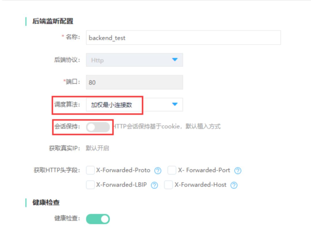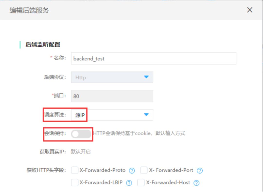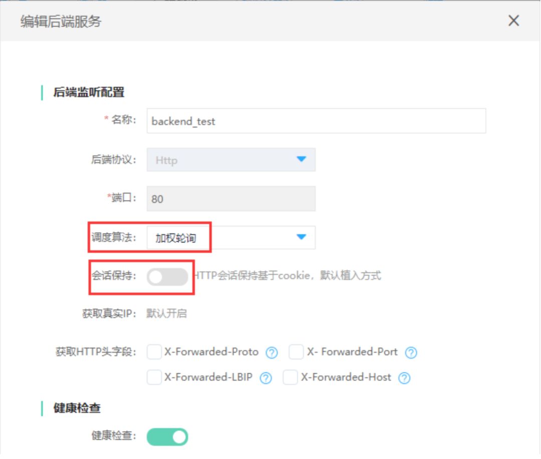 接下来我们到负载均衡的后端服务编辑backend_test,将如图中的会话保持功能关闭,并将调度算法更改为加权最小连接数;