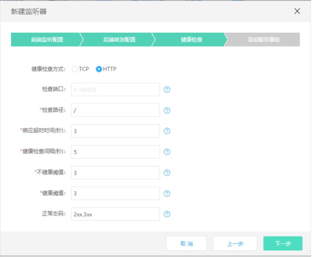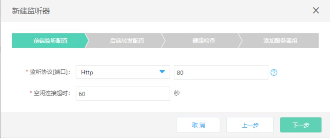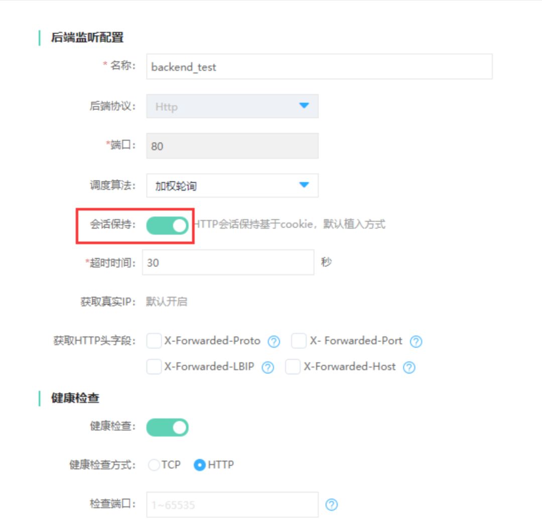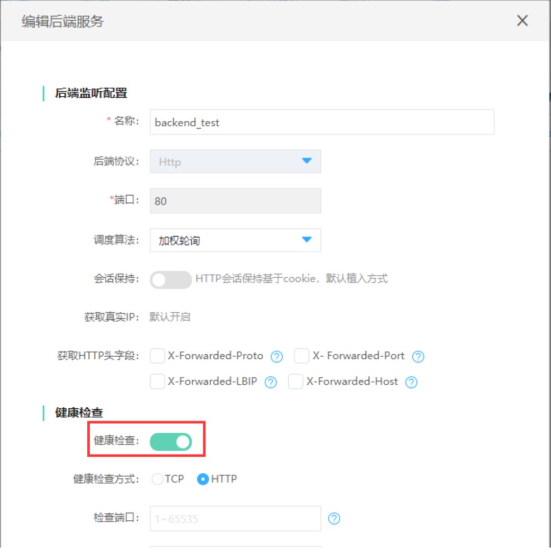 后端转发配置:新建一个后端服务backend_test,其他保持默认配置(加权轮询/不开启会话保持),然后点击下一步