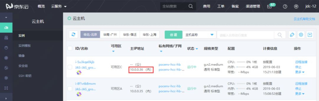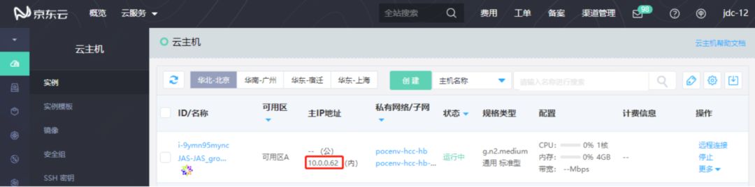 在云主机控制台能够看到根据定时任务新弹出的云主机(内网IP10.0.0.4)
