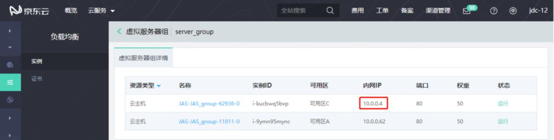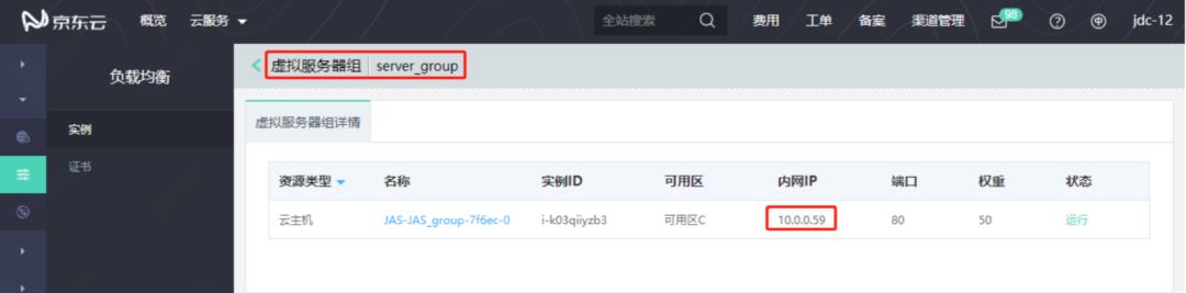 并且,在负载均衡的虚拟服务器组中我们可以看到,新弹出的云主机自动与负载均衡关联