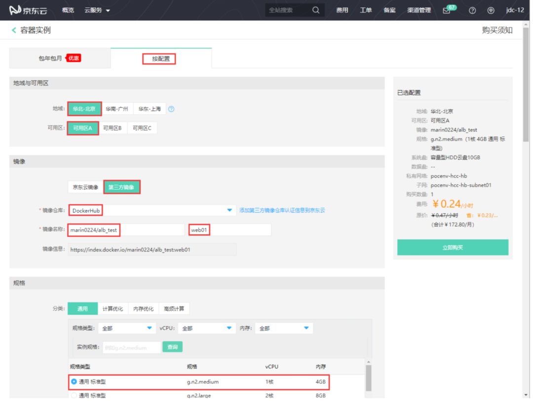 镜像信息:https://index.docker.io/marin0224/alb_test:web02(自动生成)规格:1核4GB(默认)