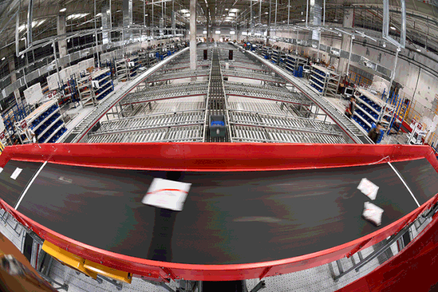 采用了行业领先的大型分拣机和矩阵式作业模式;